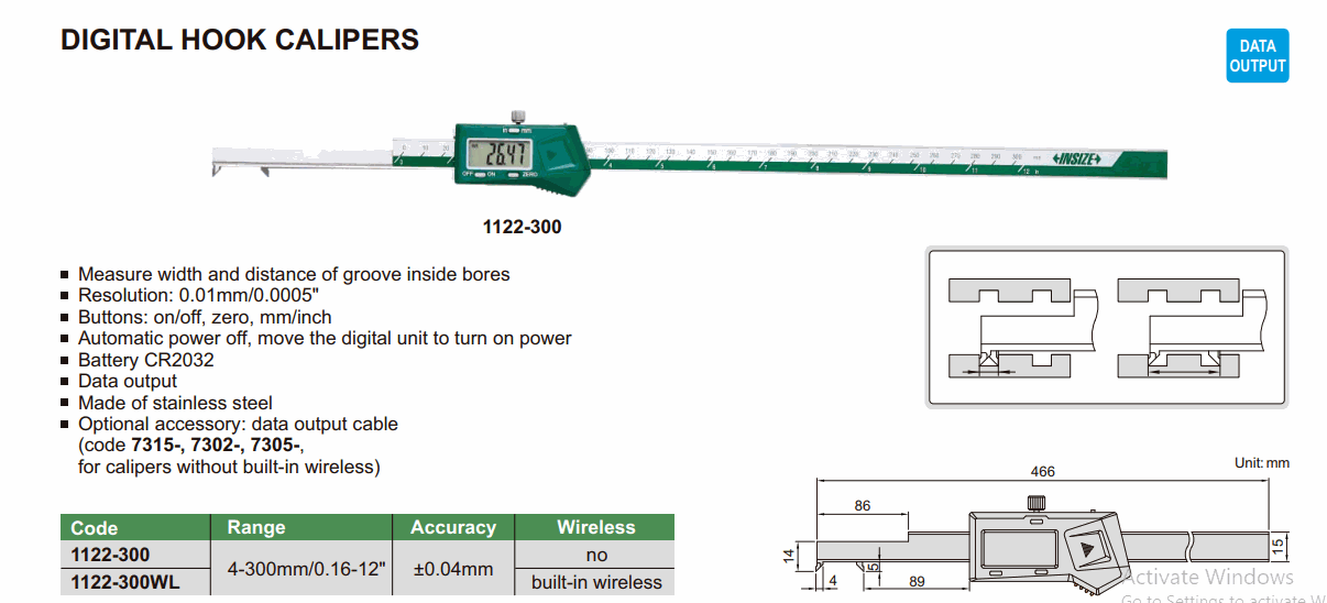 INSIZE 1122-300WL Digital Hook Caliper (4-300mm/0.16-12”; 0.01mm/0.0005”; Built-in wireless) | EMIN.COM.LA