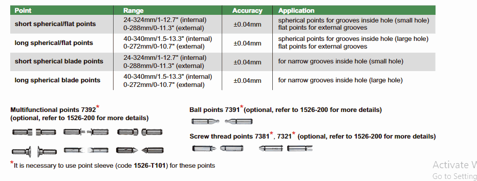 Application: shperical points for grooves inside hole (small hole); flat points for external grooves