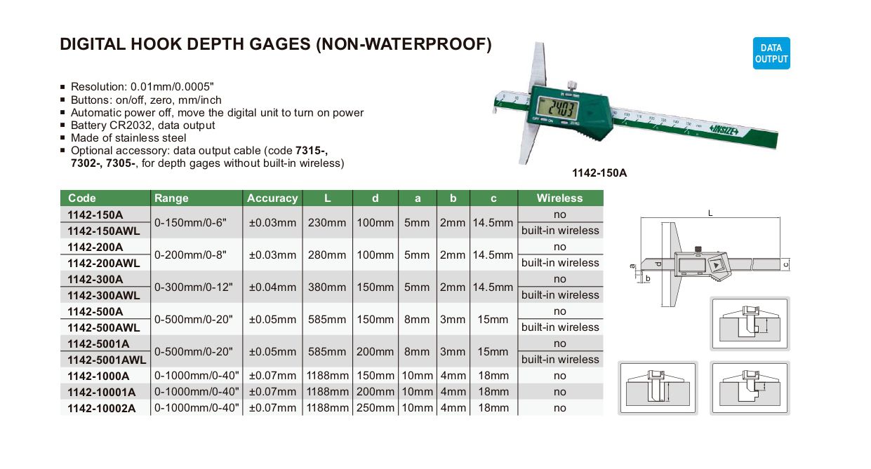 INSIZE 1142-10001A Digital Hook Depth Gage (0-1000mm/0-40") | EMIN.COM.LA