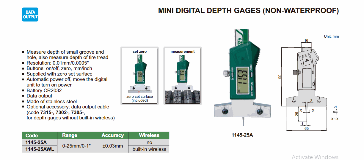 INSIZE 1145-25AWL Mini Digital Depth Gage (0~25mm) | EMIN.COM.LA