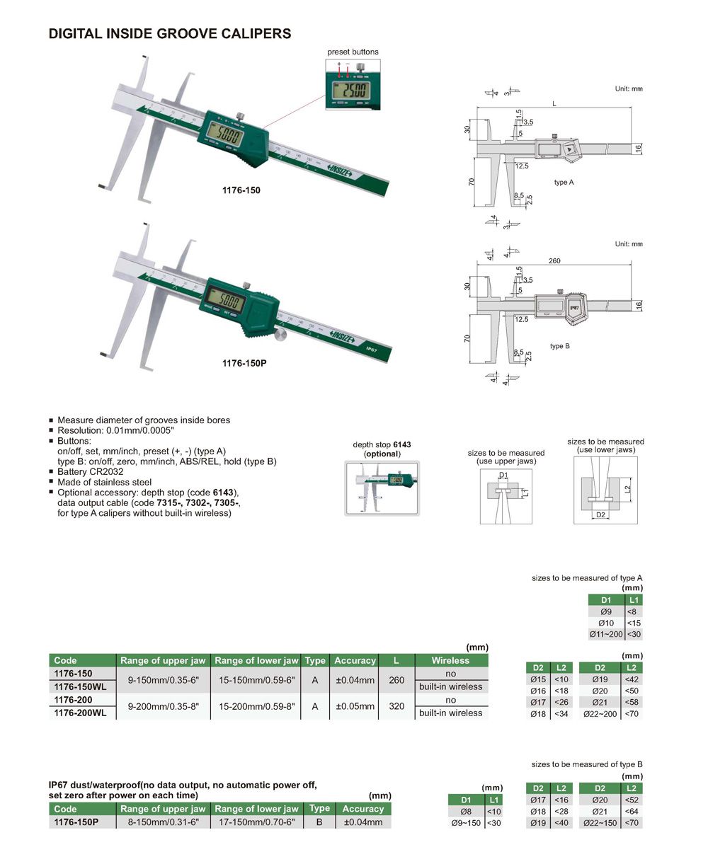 INSIZE 1176-200WL Digital Inside Groove Caliper (9-200mm/0.35-8"; 15-200mm/0.59-8"; built-in wireless) | EMIN.COM.LA