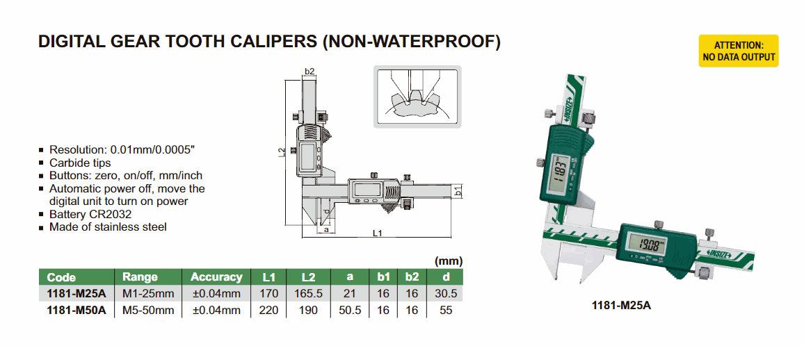 INSIZE 1181-M25A Digital Gear Tooth Caliper (M1-25mm, non-waterproof) | EMIN.COM.LA