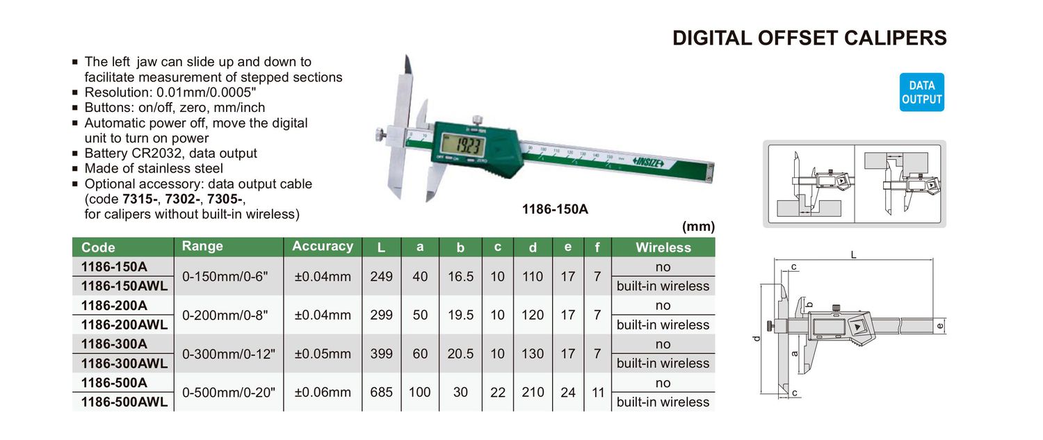 INSIZE 1186-500A Built-In Wireless Digital Offset Caliper (0-500mm/0-20") | EMIN.COM.LA