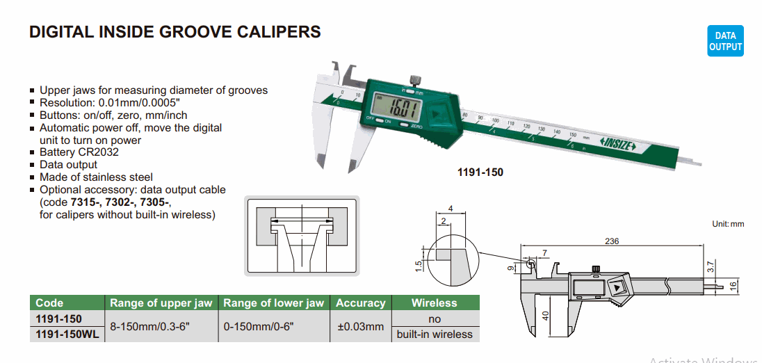 INSIZE 1191-150 Digital Inside Groove Caliper (8-150mm/0.3-6” or 0-150mm/0-6”; No built-in wireless) | EMIN.COM.LA