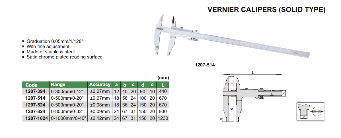 INSIZE 1207-524 Vernier Caliper (0~500mm; 0.05mm) | EMIN.COM.LA