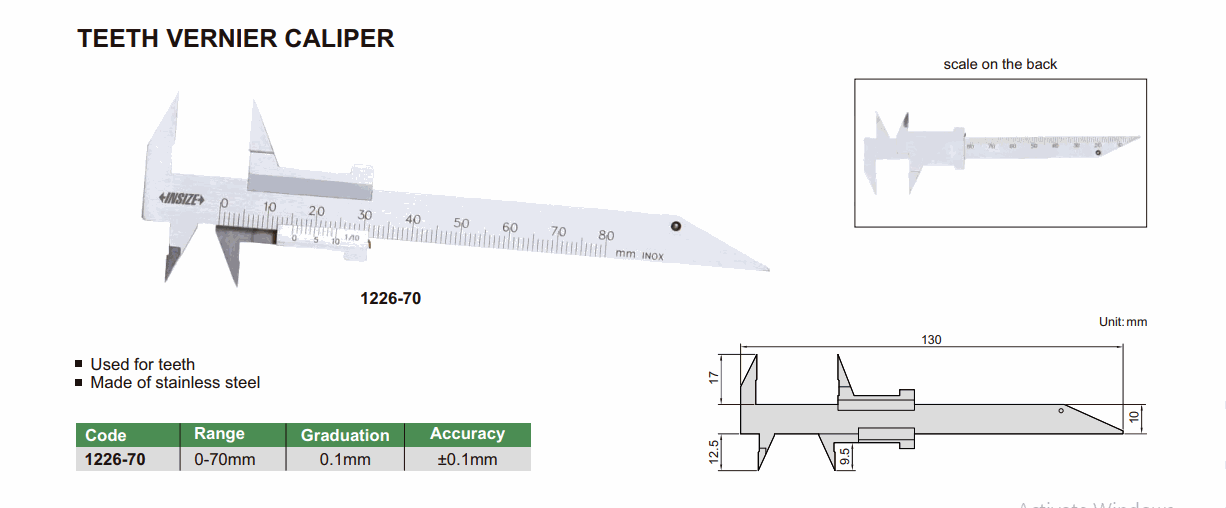 INSIZE 1226-70 ແຂ້ວ Vernier Caliper (0-70mm; 0.1mm) | EMIN.COM.LA
