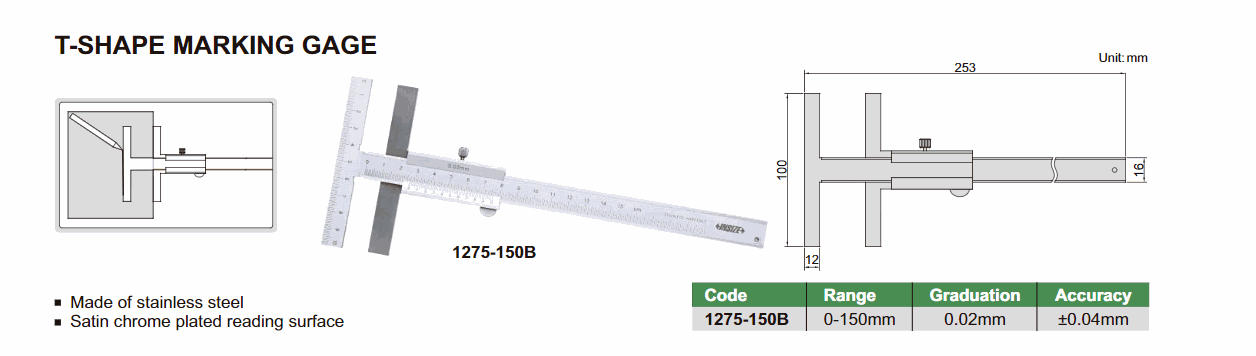 INSIZE 1275-150A T-Shape Marking Gage (0~150mm) | EMIN.COM.LA