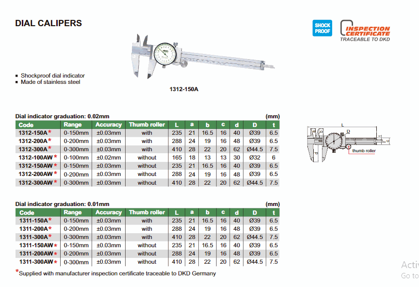 INSIZE 1312-150AW ໂທ Caliper (0-150mm) | EMIN.COM.LA