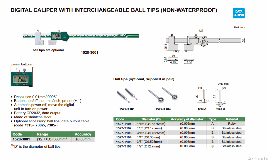 INSIZE 1528-3001 Caliper ດິຈິຕອລກັບປາຍບານທີ່ສາມາດປ່ຽນໄດ້ ((12.7+D)~300mm) | EMIN.COM.LA