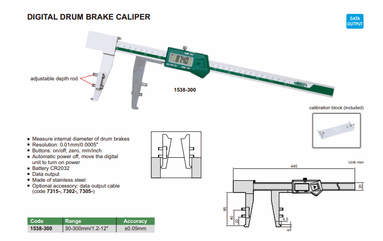 INSIZE 1538-300 Digital Drum Brake Caliper (30-300mm/1.2-12”; 0.01mm/0.0005”) | EMIN.COM.LA