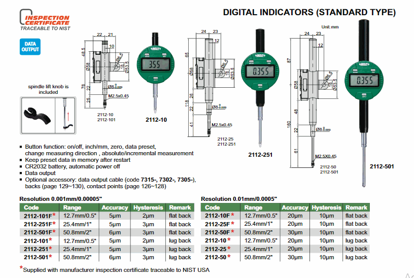 INSIZE 2112-50F ຕົວຊີ້ວັດດິຈິຕອນ (ປະເພດມາດຕະຖານ) (50.8mm/2"; 0.01mm/0.0005") | EMIN.COM.LA