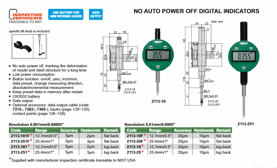 INSIZE 2113-25F ບໍ່ມີຕົວຊີ້ບອກ Digital Power Off (25.4mm/1"; 0.01mm/0.0005") | EMIN.COM.LA
