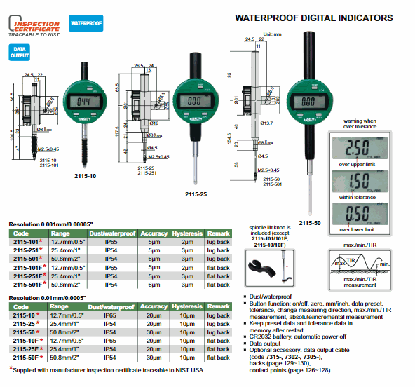 INSIZE 2115-501 ຕົວຊີ້ວັດດິຈິຕອນ Warerproof (50.8mm/2"; lug back) | EMIN.COM.LA