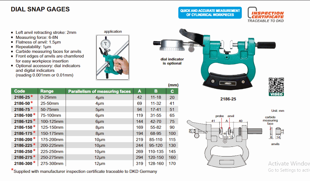 INSIZE 2186-100 Dial Snap Gage (75-100mm) | EMIN.COM.LA