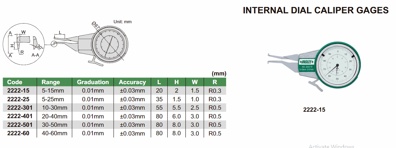 INSIZE 2222-301 ພາຍໃນ Dial Caliper Gage (10-30mm) | EMIN.COM.LA