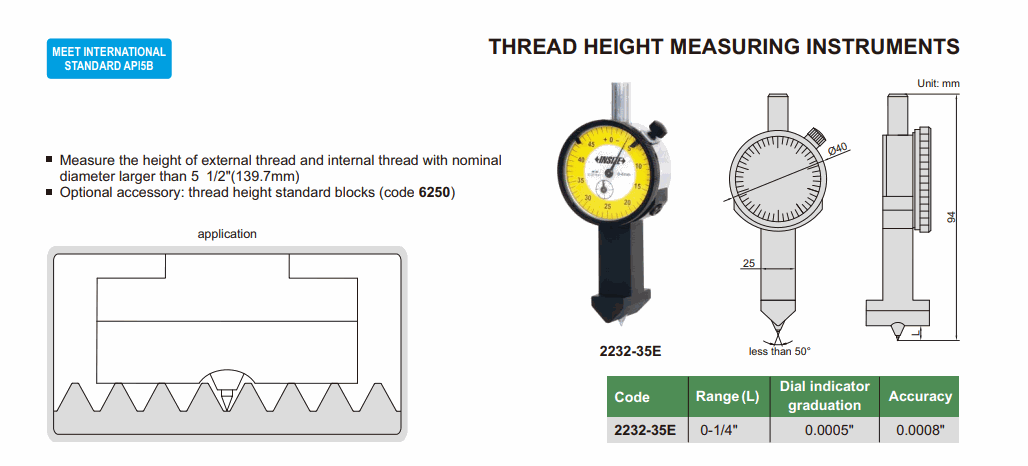 INSIZE 2232-35 ເຄື່ອງມືວັດແທກຄວາມສູງຂອງກະທູ້ (0-3.5mm; 0.01mm; 0.02mm) | EMIN.COM.LA