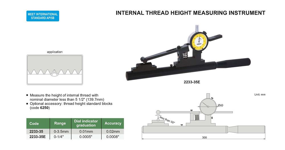 INSIZE 2233-35 ເຄື່ອງມືວັດແທກຄວາມສູງກະທູ້ພາຍໃນ (0-3.5mm; 0.01mm; 0.02mm) | EMIN.COM.LA