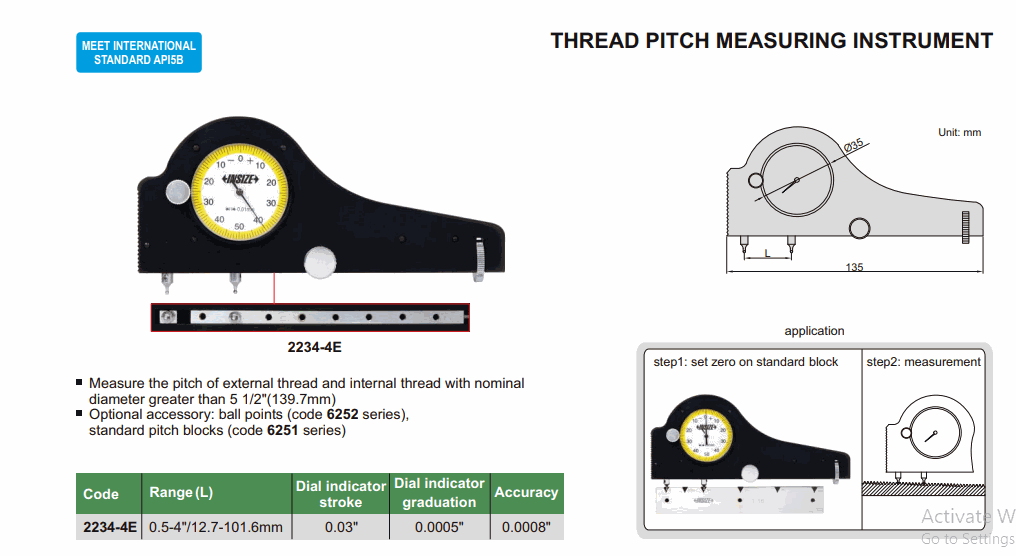 INSIZE 2234-4 Thread Pitch ເຄື່ອງມືວັດແທກ (0.5-4”/12.7-101.6”; 0.01mm; 0.02mm) | EMIN.COM.LA