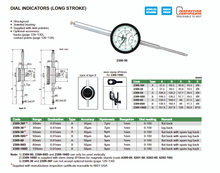 INSIZE 2309-80D ຕົວຊີ້ວັດໜ້າປັດ (ສາຍຍາວ) (80mm; 0.01mm) | EMIN.COM.LA