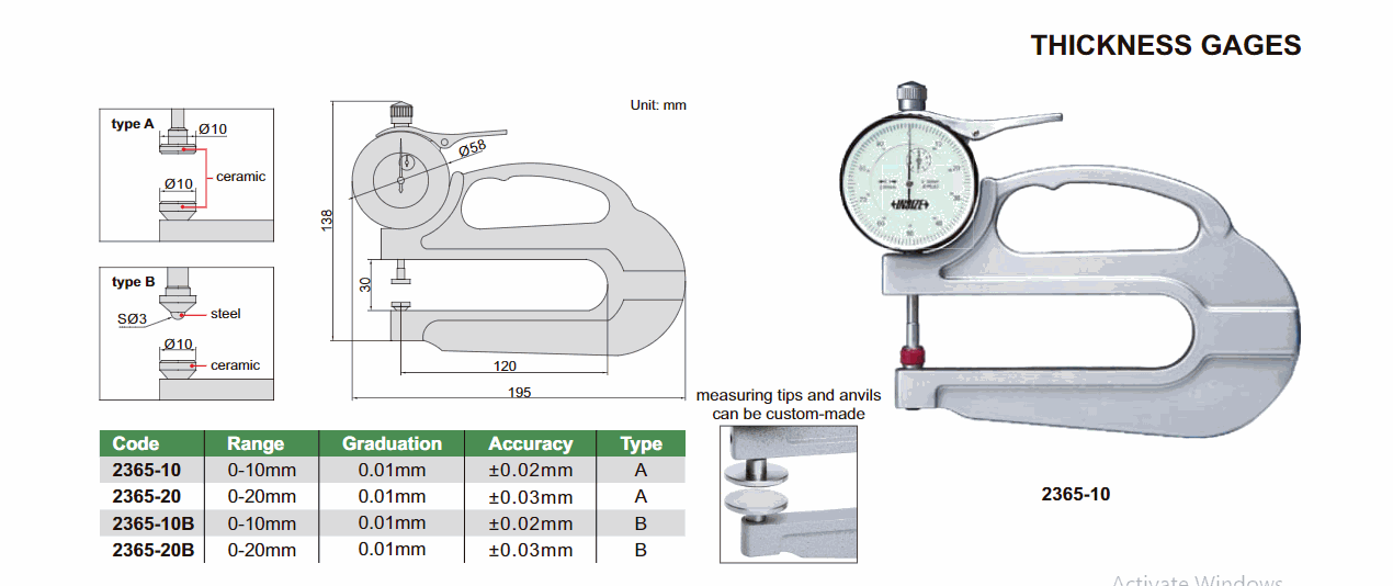 INSIZE 2365-10B Gage ຄວາມຫນາ (0-10mm; type B) | EMIN.COM.LA
