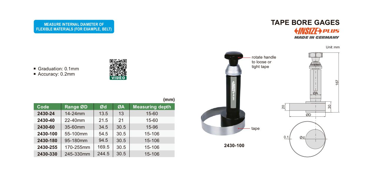INSIZE 2430-180 Tape Bore Gage (95-180mm) | EMIN.COM.LA