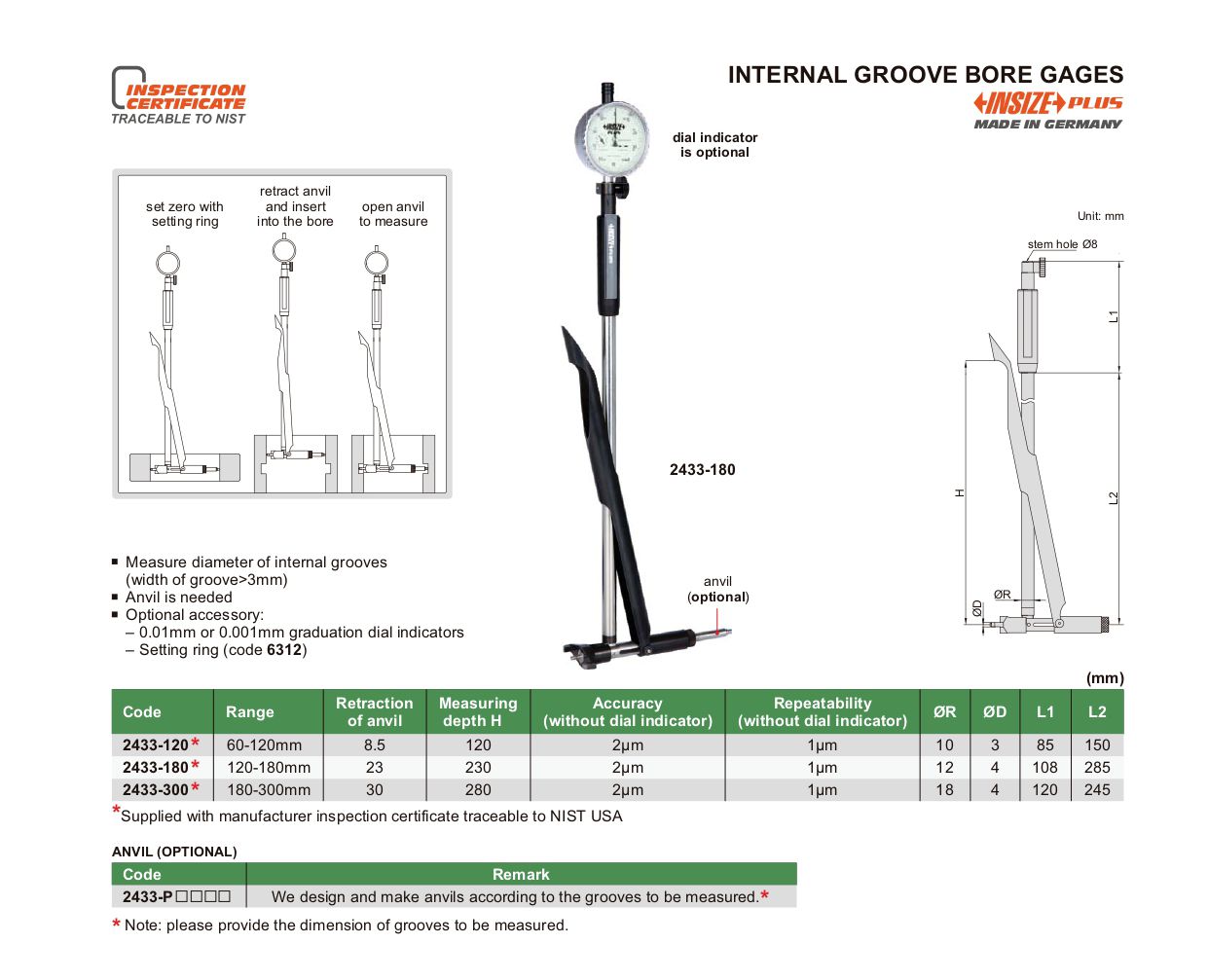 INSIZE 2433-120 Internal Groove Bore Gage (60-120mm) | EMIN.COM.LA
