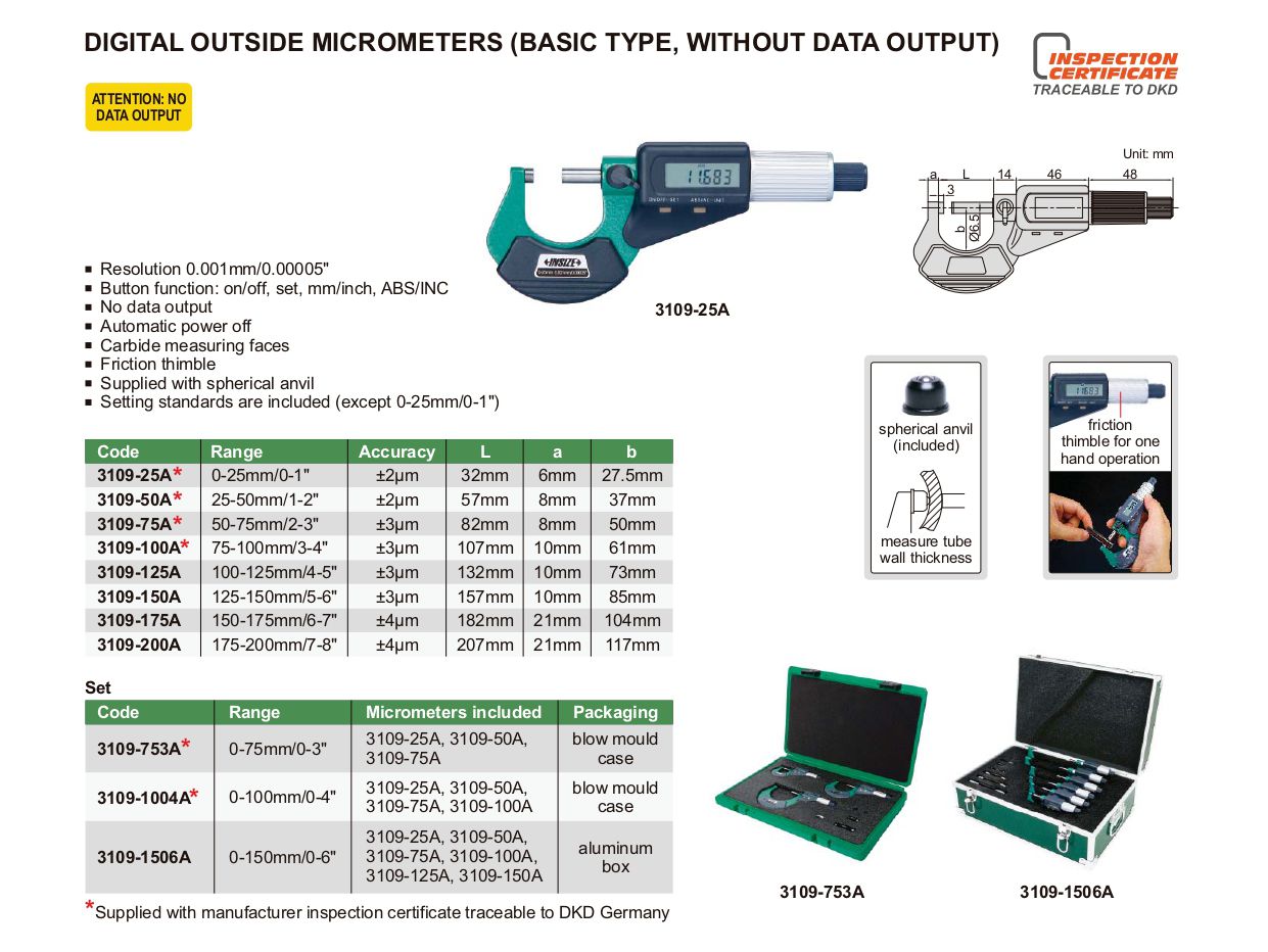 INSIZE 3109-100A ນອກ ໄມໂຄມິເຕີ Digimatic (75-100mm/0.001) | EMIN.COM.LA