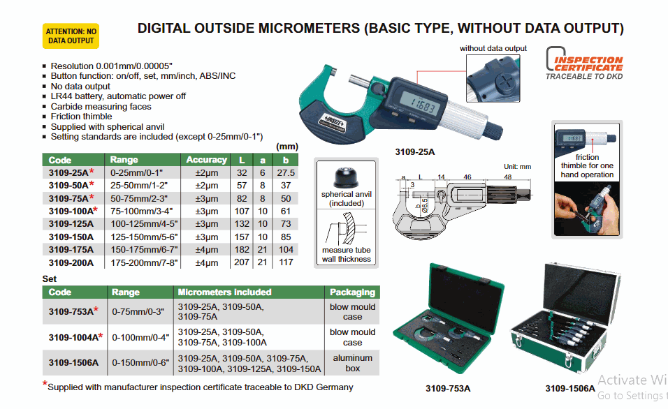 INSIZE 3109-175A Digital Outside Micrometer (150-175mm/6-7"; Without data output) | EMIN.COM.LA
