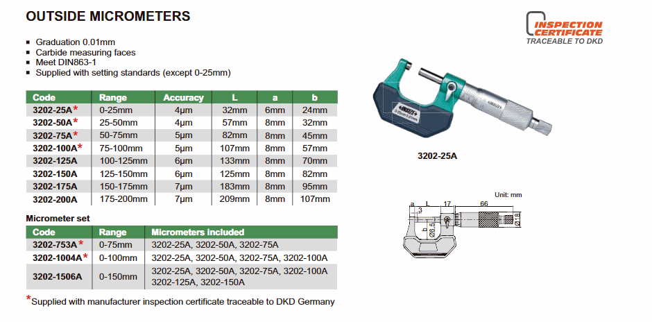 INSIZE 3202-150A ໄມໂຄມິເຕີນອກ (125-150mm; 0.01mm) | EMIN.COM.LA