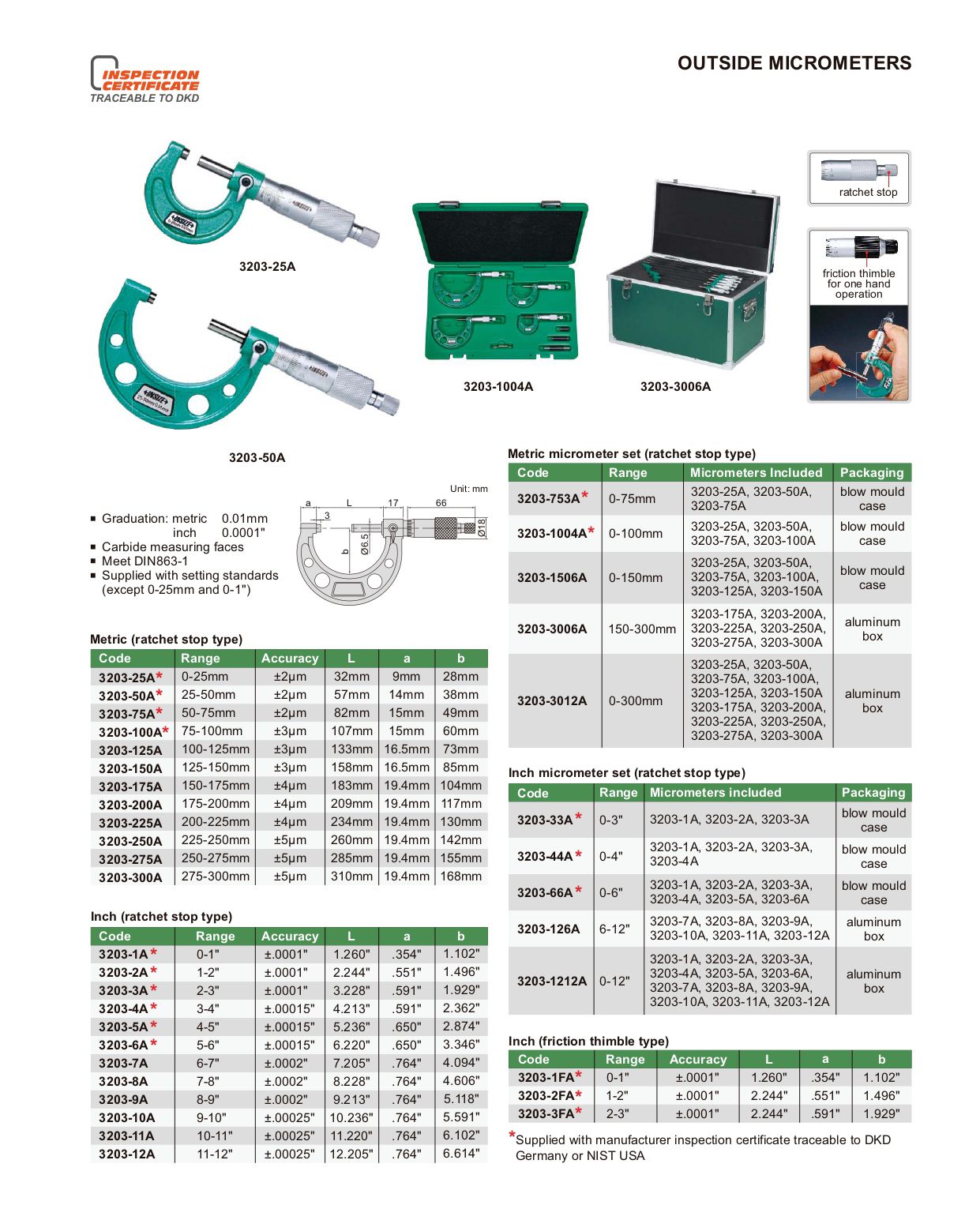 INSIZE 3203-1004A ຊຸດໄມໂຄມິເຕີພາຍນອກ (0-100mm) | EMIN.COM.LA