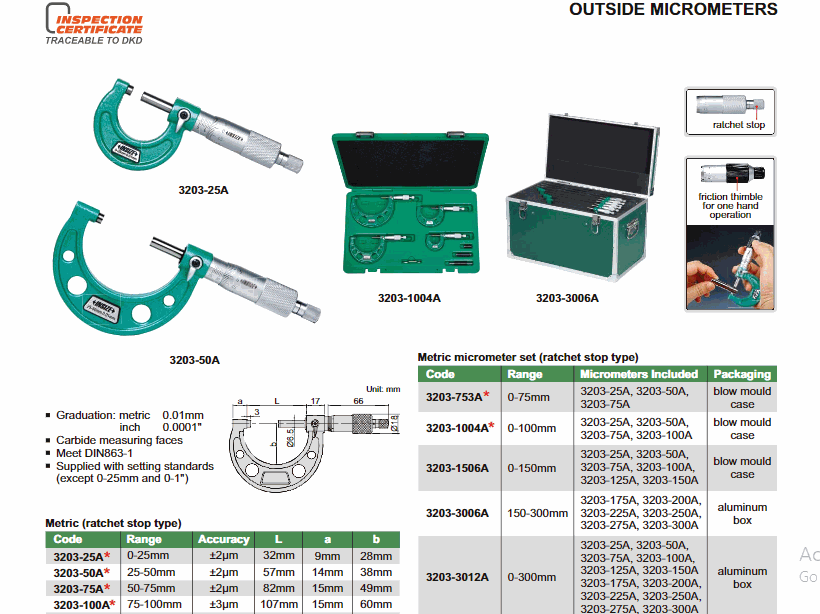 INSIZE 3203-2A ໄມໂຄມິເຕີນອກ (1-2"; 0.0001".) | EMIN.COM.LA