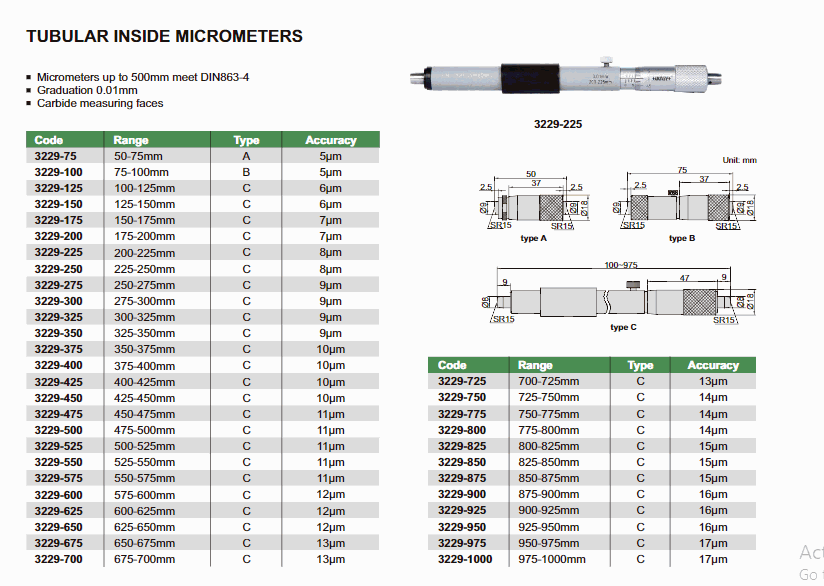 INSIZE 3229-300 Tubular ພາຍໃນ Micrometer (275-300mm; 9µm) | EMIN.COM.LA