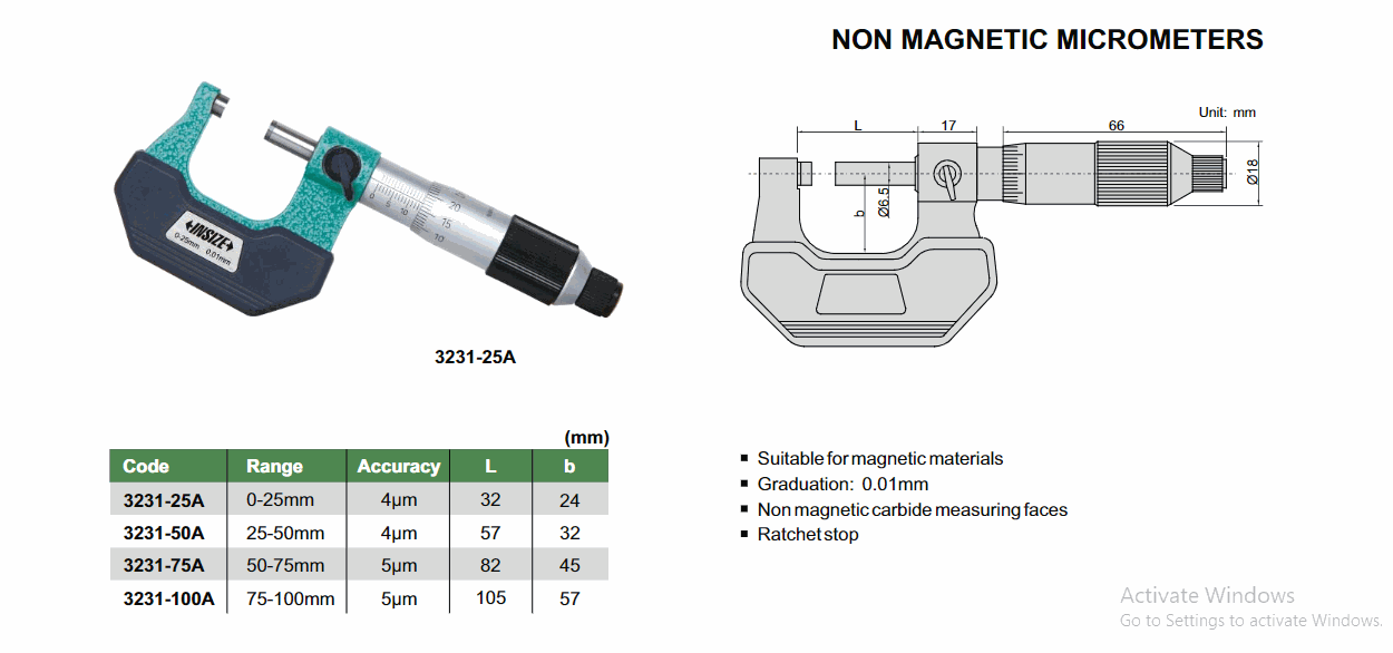 INSIZE 3231-50A ໄມໂຄມິເຕີທີ່ບໍ່ແມ່ນແມ່ເຫຼັກ (25-50mm; 0.01mm; 4µm) | EMIN.COM.LA