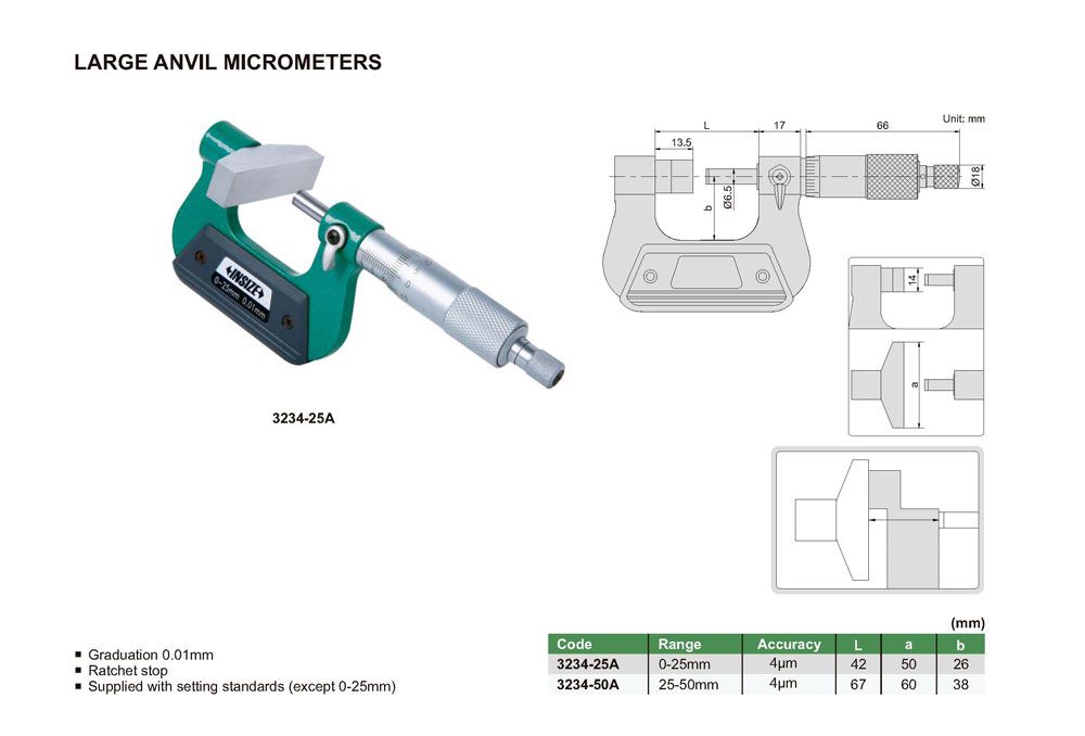 INSIZE 3234-50A Anvil Micrometer ຂະຫນາດໃຫຍ່ (25-50mm; 0.01mm) | EMIN.COM.LA