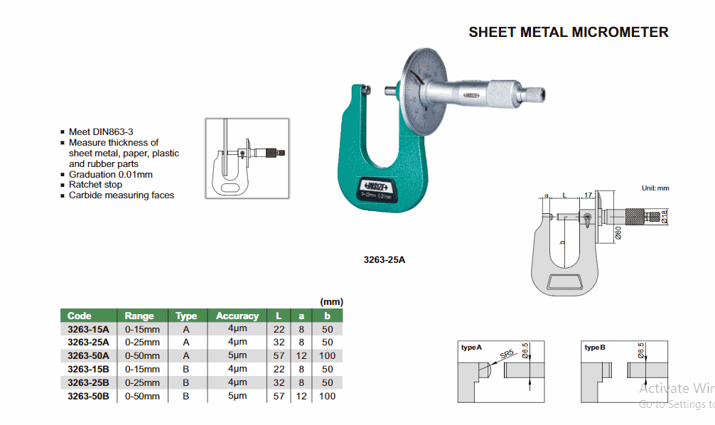 INSIZE 3263-25A Sheet Metal Micrometer (0-25mm/0.01mm/SR5) | EMIN.COM.LA