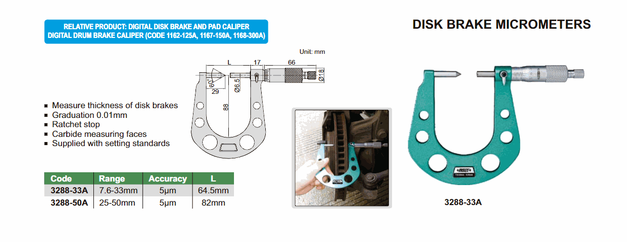 INSIZE 3288-33A Disk Brake Micrometer (7.6-33mm; 0.01mm) | EMIN.COM.LA