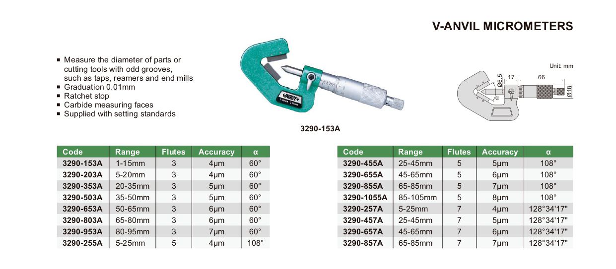 INSIZE 3290-203A ໄມໂຄມິເຕີ V-anvil (5-20mm) | EMIN.COM.LA