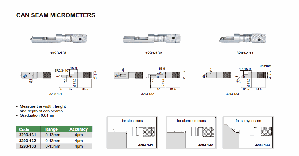 INSIZE 3293-133 ສາມາດ Seam Micrometer (0-13mm; 0.01mm) | EMIN.COM.LA