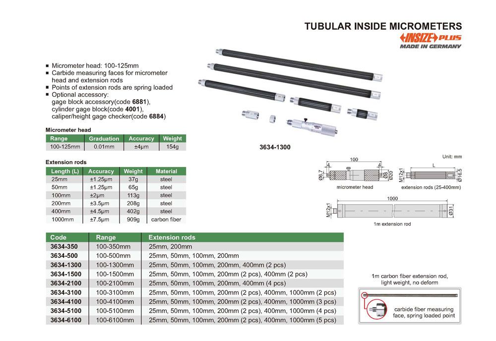 INSIZE 3634-1500 Tubular ພາຍໃນ Micrometer (100-1500mm) | EMIN.COM.LA
