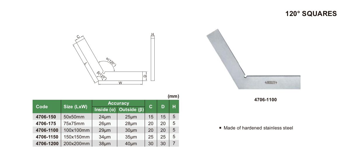 INSIZE 4706-150 120° ຮຽບຮຽງ (120°; 50x50mm) | EMIN.COM.LA