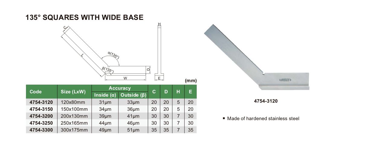 INSIZE 4754-3120 135° Square ມີຖານກ້ວາງ (135°; 120x80mm) | EMIN.COM.LA