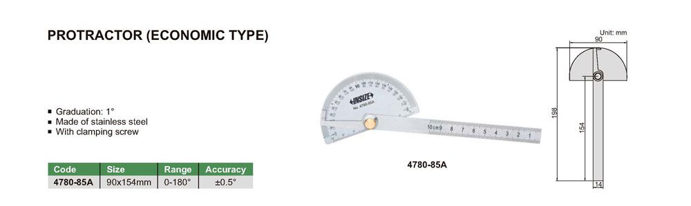 INSIZE 4780-85A Protractor (0-180°; ±0.5°; 1°) | EMIN.COM.LA