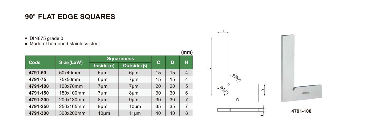 INSIZE 4791-50 90° Flat Edge Square (50x40mm) | EMIN.COM.LA