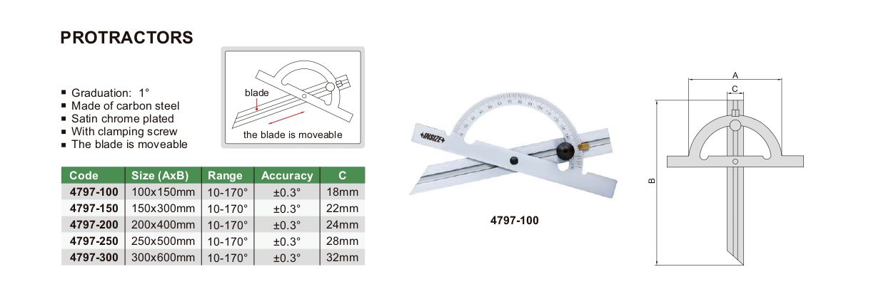 INSIZE 4797-250 Protractor (10-170°, 250x500mm) | EMIN.COM.LA