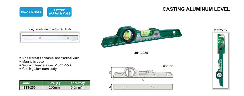 INSIZE 4913-250 ລະດັບອາລູມິນຽມ Cast (250mm; 0.5mm/m) | EMIN.COM.LA