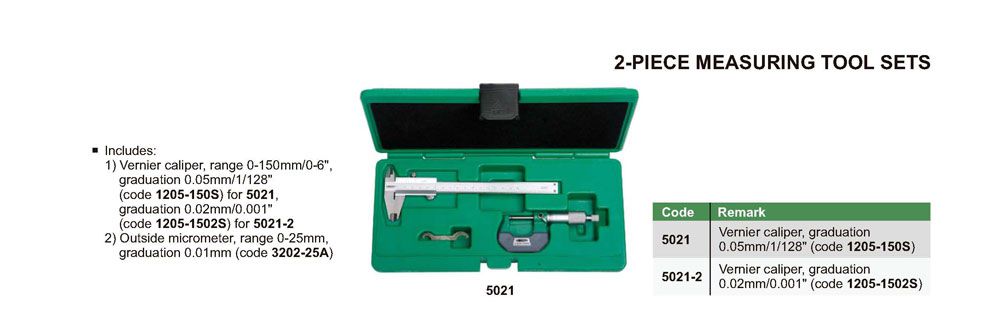 INSIZE 5021-2 2- ຊຸດເຄື່ອງມືວັດແທກສິ້ນ (0-150mm/0-6", 0-25mm, 0.02mm/0.001") | EMIN.COM.LA