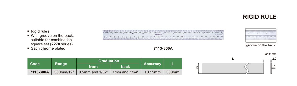 INSIZE 7113-300A ກົດລະບຽບເຄັ່ງຄັດ (300mm/12") | EMIN.COM.LA