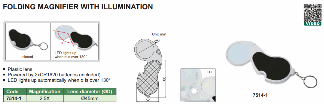 INSIZE 7514-1 Folding Magnifier ກັບ illumination | EMIN.COM.LA