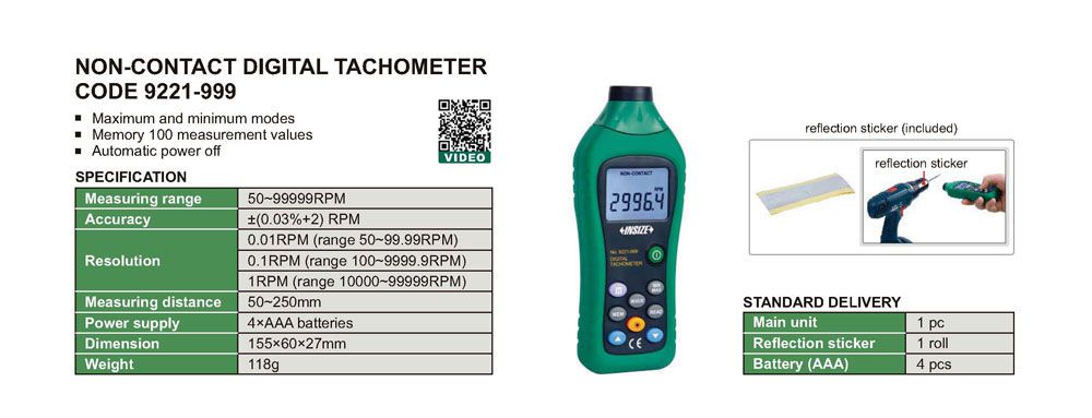 INSIZE 9221-999 ເຄື່ອງວັດດິຈິຕອນທີ່ບໍ່ຕິດຕໍ່ (50~99999RPM) | EMIN.COM.LA