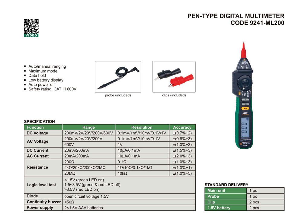 -Range: 200 Ω; Resolution: 0.1 Ω; Accuracy: ±(1.0%+3)